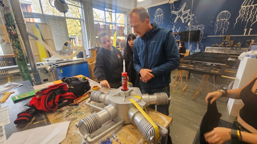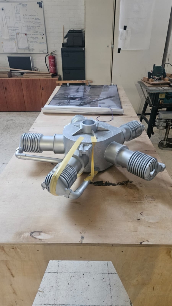 Voor de mock-up is een dummy motor gerealiseerd op basis van de beschikbare afmetingen van een originele Anzani motor. Studenten van Noorderpoort zijn er boven verwachting in geslaagd om met minimale middelen een zeer goed lijkende motor te bouwen, super trots zijn we op het resultaat en op de dames!